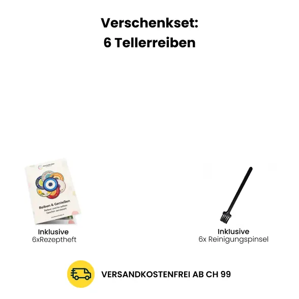 Als Geschenk für Freunde und Familie ist das tellerreibe Verschenkset mit 6 Tellerreiben Ihrer Wahl ideal geeignet.